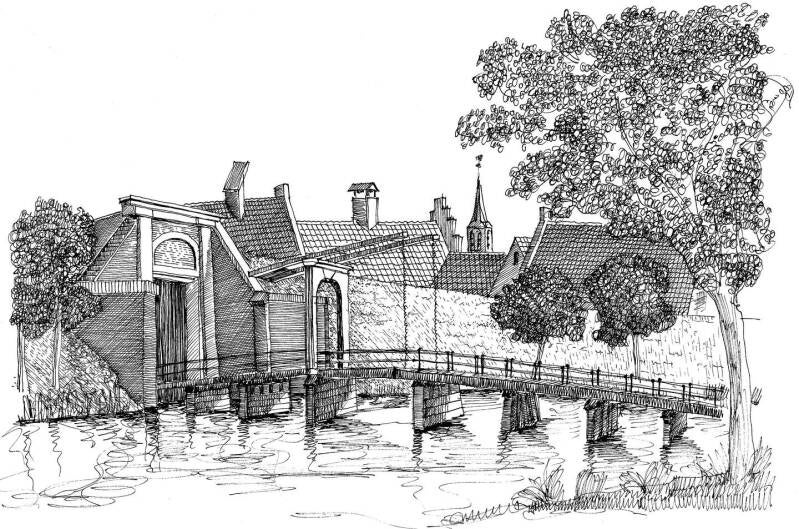 Alle Haarlemse poorten zijn in de zestiende, zeventiende en achttiende eeuw door veel kunstenaars vereeuwigd, met potlood, pen en verfkwast. Kortom er is een rijk archief met bronmateriaal beschikbaar, waarin ik me sinds de zomer van 2024 met veel plezier in verdiep. Ik probeer de verschillende poorten zo goed als mogelijk te reconstrueren. Bijzonder werk, leuk werk. Geleidelijk aan begint het fort Haarlem waar de Spanjaarden tijdens het beleg van 1572-1573 zeven maanden om hebben gevochten vorm te krijgen. Het boek en het verhaal over Haarlem Vestingstad zal naar verwachting in het voorjaar van 2026 klaar zijn. Tot die tijd zal ik met regelmaat op deze plek tekeningen voor dit nieuwe boek laten zien.